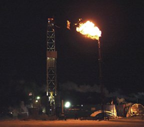 The Mallik team also tested a second recovery technique. In this dramatic field experiment, lasting 5 days, water heated to 70°C melted the hydrates. The crew then pumped the gas-bearing liquid to the surface, separated out the methane, and shunted it to a flaring tower.