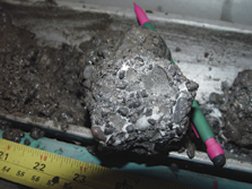Each time the researchers pulled a 6 m-long, 7.5-centimeter-wide core of black, sandy material out of the ground, the core’s surface fizzled as gas escaped from the hydrates. To preserve hydrates for future studies, the researchers sealed some cores inside special pressure- and temperature-controlled canisters.