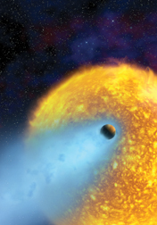 The findings suggest that some other planets, residing even closer to a stellar furnace than HD209458b does, will simply evaporate. That could explain why among the roughly 100 extrasolar planets discovered to date, only 9 are so-called “hot Jupiters,” orbiting their stars so closely that they complete one revolution in just a few days.