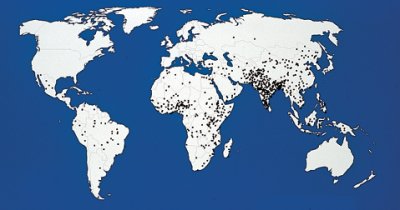 BIG KILLER. Reflecting an annual estimated mortality of 800,000 from rotavirus, this map marks with a dot the location of each 1,000 deaths. |