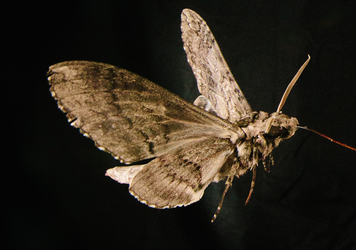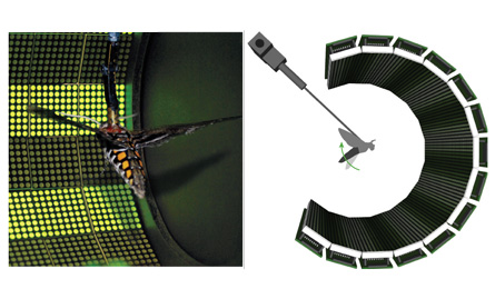 Morgansen and another AIRFOILS member, University of Washington biologist Tom Daniel, saw this special dance when they put hawk moths into a semicircle arena covered with LED panels. In the same way they would react to a flame, the moths turned toward the lit-up LED lights. By using high-speed video and Hedrick’s algorithms, the team learned that hawk moths wiggle their abdomens to quickly pivot up or down, as reported in the Journal of Experimental Biology in 2013.