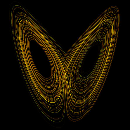 Binder believes that this notion can unite the competing definitions of complexity that have arisen in recent decades. Take, for example, Edward Lorenz’s famous “butterfly” attractor, one of the earliest examples of a chaotic system studied. A simple equation, applied repeatedly, moves points in a plane to new points. As the points move, they trace out two loops that look like a butterfly’s wings. Track a single point, and you’ll find something odd: It doesn’t move in an orderly fashion between the two wings, rather it bounces between them in a seemingly random pattern. Furthermore, two points that start close to one another can easily get pulled to opposite sides of the butterfly, ending up nowhere near one another.