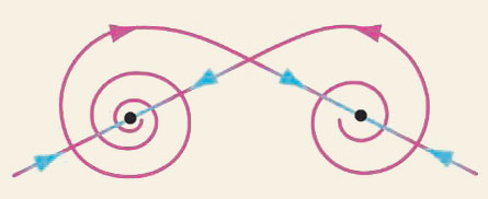 This is a complex system, some would say, because it’s impossible to predict the path of a point unless you know with infinite precision where it was to begin with. Binder says that while that captures an element of what it means to be a complex system, what underlies the unpredictability is frustration. The equation of the Lorenz attractor has combined tendencies to both compress and to stretch the plane.