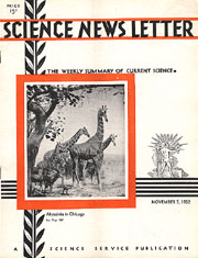 Visitors to Chicago can make an effortless side trip to the wilds of Abyssinia by walking down the Carl Akeley Memorial Hall of African Animals in the Museum of Natural History. At the end, a remarkable new group of African mammals has been arranged so as to give a most naturalistic illusion of a vista across a water hole where the beasts meet in a truce imposed by the common foe of all life–thirst.