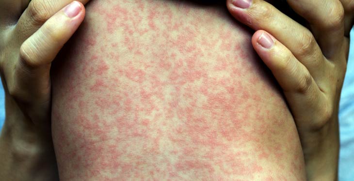 The first signs of an infection include a fever and cough, followed about four days later by a rash of flat, red spots. There’s no treatment for measles, other than managing symptoms with fever reducers, for example. Those who have been exposed to the virus but aren’t immunized can get vaccinated within 72 hours to protect against the illness.