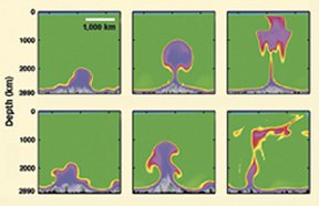 In the 1960s, scientists first conceived of mantle plumes as long cylinders of buoyant rock that gradually flatten and spread into mushroom shapes as the molten masses rise through the mantle. However, new computer simulations suggest that plumes can take on a variety of contours.