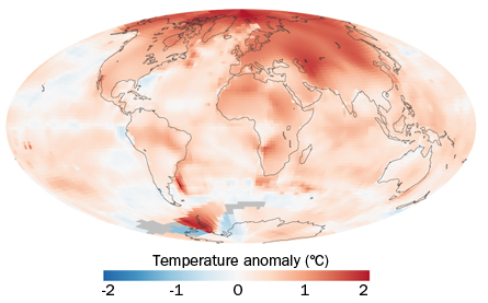 Combined land and ocean surface temperatures across the globe in 2010 were 0.62 degrees Celsius higher than the 20th century average, the NOAA analysis reports. In the continuous United States, temperatures were 0.6 degrees above normal,making it the 23rd warmest year on record for the country. The Northern Hemisphere experienced its warmest year on record, while the Southern Hemisphere saw its sixth warmest.