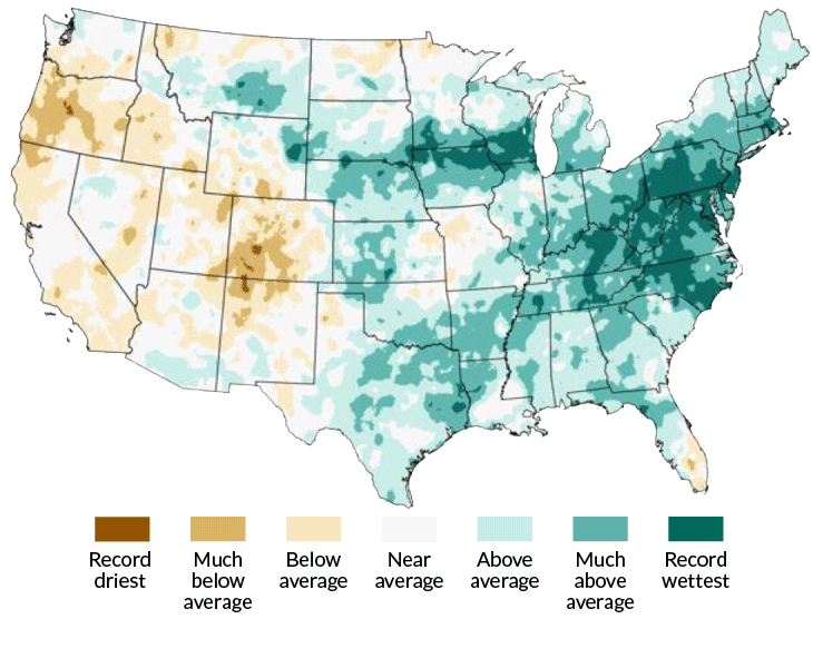 As warmer temperatures mess with global rainfall patterns, the U.S. East saw record rains