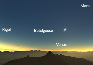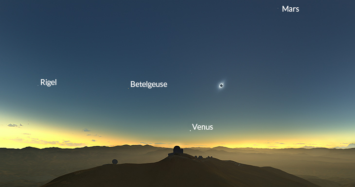 But none of the telescopes at Cerro Tololo or the European Southern Observatory’s La Silla site will actually be able to aim at the eclipse. Designed to collect as much light as possible from the night sky, they could catch fire if they observed the sun directly.