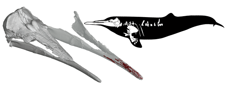The CT scans allowed Racicot to see that the sensory canals in the porpoise’s jaw extended the entire length of the bone. The only modern animals that have this sort of structure are skimmer birds and a kind of fish known as a halfbeak, she says. Both of those feed by using sensory canals in their jaws to sense nearby prey and then snap down their dinner as they skim above or through the water. Similarly, the extinct porpoise may have used its pointy chin to root through the soft sand on the seafloor, sensing the vibration of small animals and then eating them. In the March 31 Current Biology, Racicot and her colleagues dubbed the animal Semirostrum, since the upper part of its jaw, or rostrum, is so much shorter than its elongated lower part.