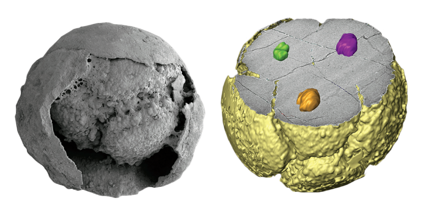 Using the super-sharp insight of the synchrotron X-rays, Cunningham’s team virtually dissected the blobs, revealing structures within. Those structures, some as small as a thousandth of a millimeter across, may be the nuclei of ancient cells. If so, they show that the fossil creatures had been developing differently than would be expected from early animals, and probably belong instead to a group known as protists.