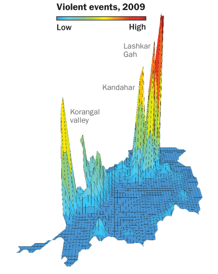 Sanguinetti and his colleagues took a mathematical approach that’s typically used by epidemiologists to predict the spread of a virus or disease outbreak. But instead of using data on the where and when of newly infected individuals, the researchers used details from the Afghan War Diary, a blow-by-blow of the conflict in Afghanistan that was published by the whistle-blower website WikiLeaks in 2010. The documents contain more than 75,000 logs of military actions, from routine searches to major gunfights.