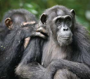 COME HITHER LOOK. In Uganda, male chimps, such as the one on the left, prefer to mate with females older than 30 years, such as the one on the right. J.-M. Krief