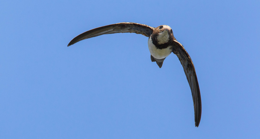 LONG FLIGHTS An alpine swift lives on the wing. Researchers logged the birds taking nonstop flights that lasted more than six months.