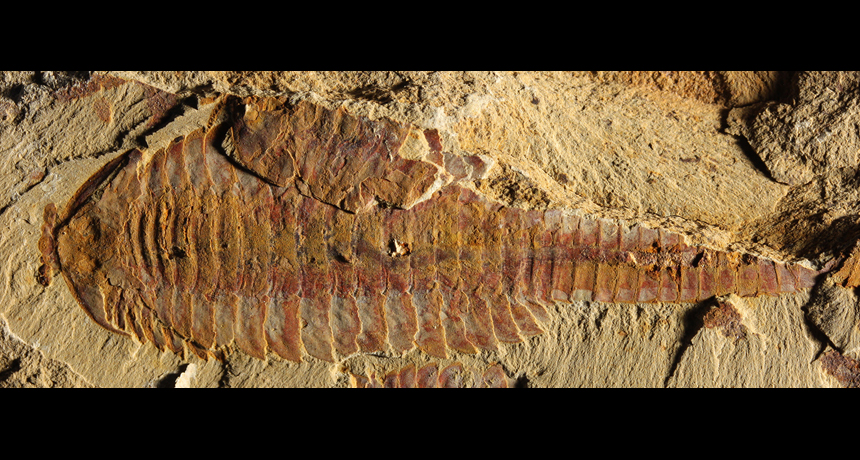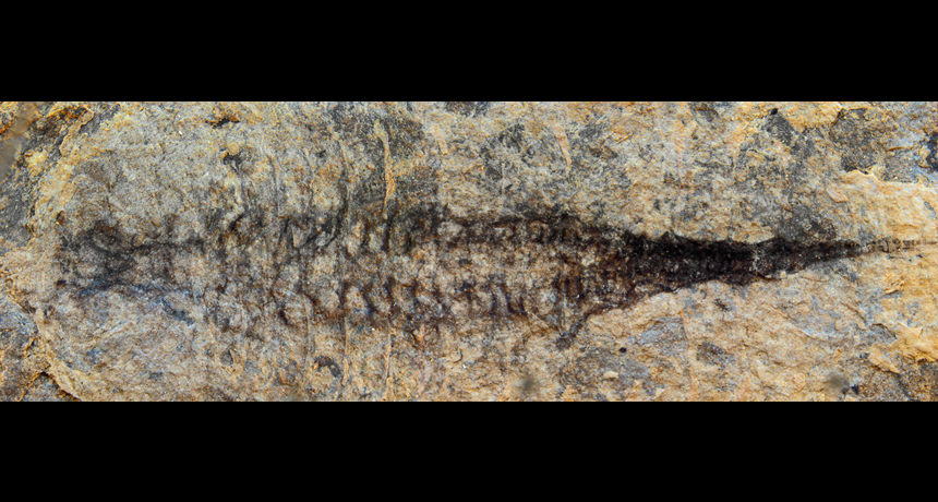 The 520-million-year-old crustacean F. protensa had a complex system of blood vessels that connected its body and brain. Part of what was once the animal’s gut appears as dark stains along the animal's midline.