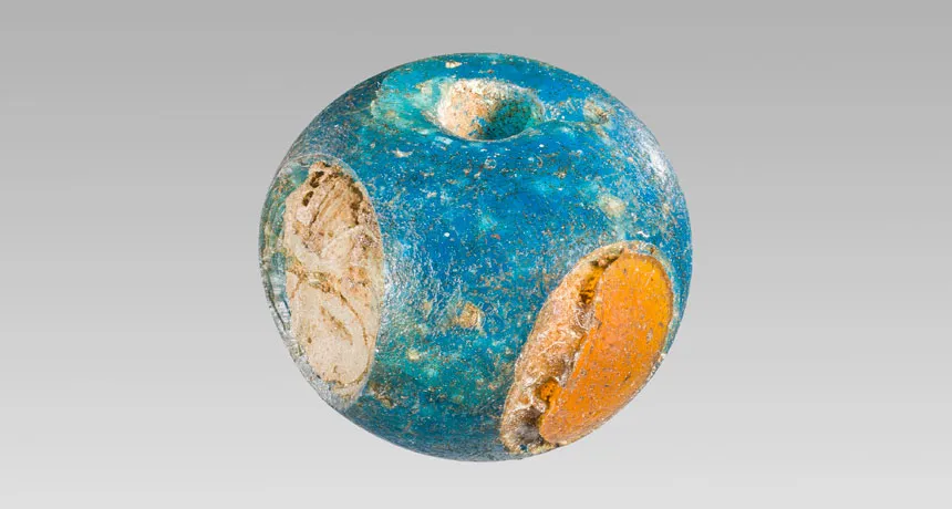 Two Danish beads were made of Egyptian cobalt-blue glass. Cobalt in these finds contained concentrations of nickel, zinc and manganese typical of cobalt-colored glass items and fragments found at several ancient Egyptian workshops. One of the two beads came from the approximately 3,400-year-old grave of a woman who lay among an array of bronze ornaments. The glass bead and two amber beads were found next to the woman’s upper right arm. The other Egyptian bead also came from a woman’s grave.
