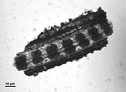 TOUGH CHEW. This phytolith, which was extracted from fossilized dinosaur dung unearthed in India, indicates that the reptiles dined on grasses.