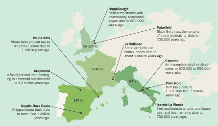 Fossil finds show that hominids migrating out of Africa reached western Asia by 1.8 million years ago (SN: 5/13/00, p. 308) and Spain’s Atapuerca Mountains by 1.2 million years ago (SN: 3/29/08, p. 196).