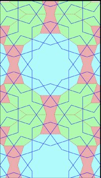 The Darb-i Imam shrine was particularly remarkable because it showed girih tile patterns at two different scales, so that large girih tiles were broken up into smaller girih tiles. In principle, by repeatedly scaling up the tiling in this way, they could have covered an arbitrarily large wall with a Penrose tiling.