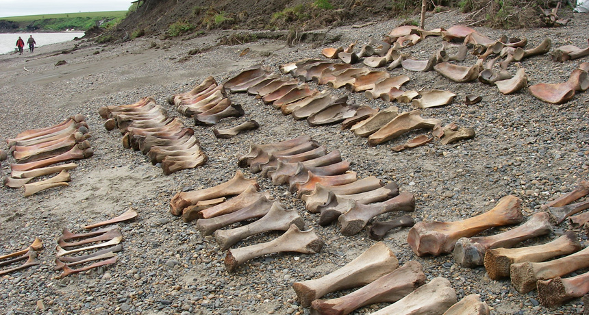 BEACH BONEYARD Excavated mammoth bones from Siberia’s Yana archaeological site suggest that people hunted mammoths mainly for ivory, which they used to make tools.