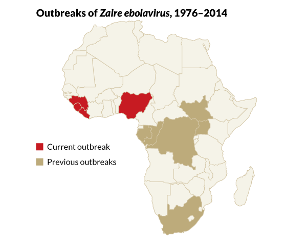 The outbreak started last December in a village in the rainforest of eastern Guinea. At first, no one recognized the disease as Ebola. Symptoms of Ebola can resemble those of many other diseases, and Ebola had never been seen in West Africa before.