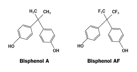 The last letter in bisphenol AF’s name denotes the substitution of fluorine atoms for six hydrogens and explains why the compound is sometimes referred to as hexafluoro-BPA. These fluorines also make BPAF behave differently than BPA in the body, biochemist Yasuyuki Shimohigashi of Kyushu University in Fukuoka, Japan, and his colleagues report online April 28 in Environmental Health Perspectives.