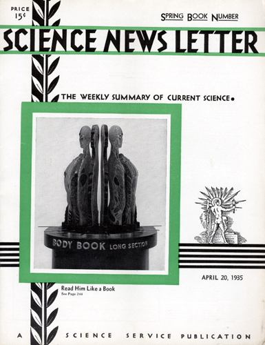 “Reading him like a book” becomes more than a figure of speech to the visitor of the new Cabana Hall of Man at the Buffalo Museum of Science, recently opened to the public. One of the most striking of the exhibits consists of two anatomical models split into a series of thin sections that can be separated, book-fashion, permitting the student to “look at his own insides,” not merely along one plane but at any place he wishes, either from right to left or from head downward.