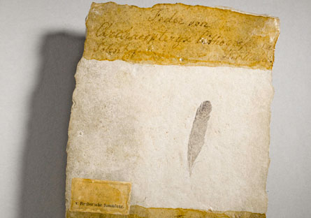 Looking back at the original 1861 description, though, Carney realized that the measurements given indicate a longer stemlike shaft at the base of the feather than is visible in today’s trace. The signs of the longer stem have worn away, so Carney and his colleagues propose that the original trace was for one of the feathers called coverts, which grow above the long feathers on the edge. That gets the size of the creature back in the range of known skeletal fossils.