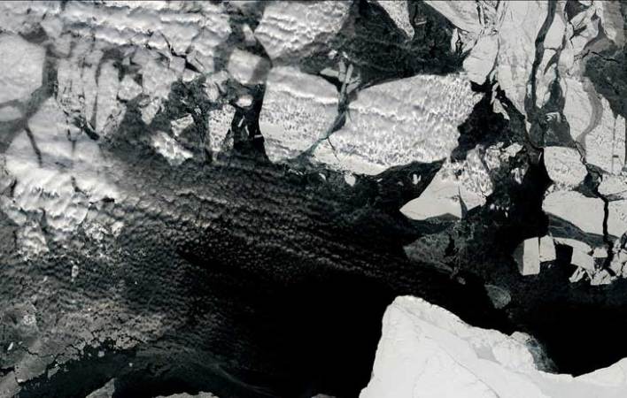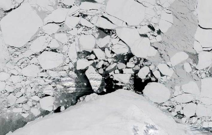 Ice breakup in the Beaufort Sea occurred earlier in the spring of 2016 (April 15, right) than it had in the spring of 2015 (April 13, left). Much of the multiyear ice has been replaced by thinner, seasonal ice.