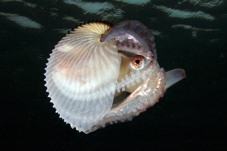 In the first reports from scuba observations of wild argonauts, Finn maneuvered Argonauta argo females so air escaped from their cases. The animals flailed as if struggling to maintain their orientation and quickly jetted to the water surface.