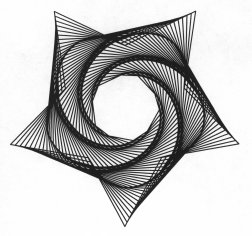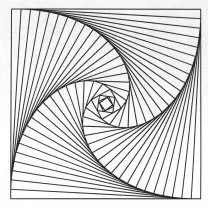 Math Trek Math Art of Pursuit By Ivars Peterson July 18, 2001 at 11:36 am - More than 2 years ago Share this:Share Share via email (Opens in new window) Email Click to share on Facebook (Opens in new window) Facebook Click to share on Reddit (Opens in new window) Reddit Click to share on X (Opens in new window) X Click to print (Opens in new window) Print The simple mathematical concept of a pursuit curve can serve as the starting point for creating wonderfully intricate artistic designs. Four “bugs” chasing one another produce an intriguing pattern of nested, rotated squares. Courtesy of John Sharp. Pursuit curves based on a star-shaped polygon. Courtesy of John Sharp. Example of a pattern in which the pursuit direction changes after regular intervals.