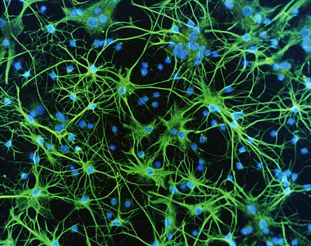 Neurons have typically gotten the most attention from researchers because they are the brain cells that do all the thinking. But neurons cohabit the brain with a class of cells called glia, which means “glue” in Greek. Glia outnumber neurons in the human brain by a factor of 10 to one, and astrocytes are the most abundant type of glial cell.