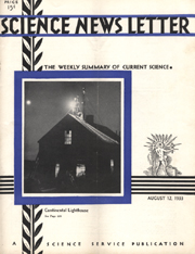 This is a moonlight photograph of the 400-watt electric lamp on the top of Mt. Washington. When flashed recently in visibility tests conducted by the Mt. Washington Polar Year observers, it was noticed as far away as Boothbay Harbor, Maine, 95 miles distant, and at many other points in New England.