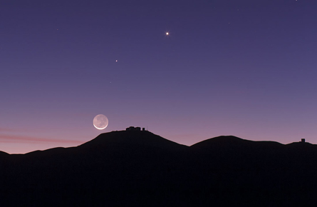 Signs of life on Earth live in Earthshine — the sunlight that passes through Earth’s atmosphere, bounces off the moon and returns to observers on the ground. Now, a team of scientists reports in the March 1 Nature that Earthshine (visible as the dimmer portion of the moon above the bright crescent) not only carries the signatures of molecules such as oxygen, ozone and water, but reveals details like the percentage of cloud and vegetation cover for a given planetscape. Similar observations might one day be key to discerning properties of distant worlds: Starlight passing through a planet’s atmosphere is polarized by things like aerosols, cloud particles and reflections from land or water. In April and June 2011, scientists using the Very Large Telescope in Chile decoded the signatures of terrestrial life in Earth’s own reflection. Researchers then compared the results with images of Earth from the moon, setting a benchmark for future exoplanet measurements.