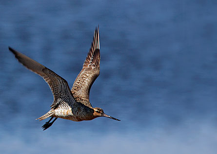 In an avian flight of epic proportions, a female bar-tailed godwit lifted off from her Alaskan breeding ground and flew south 11,680 kilometers, nonstop, until she reached her winter home in New Zealand. Called E7 by the scientists who monitored her, she flew more than eight days without food, water or rest, on the longest direct flight by a bird ever documented, researchers report online October 21 in Proceedings of the Royal Society B.
