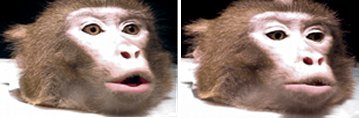 Each baby sat in front of two adjacent video monitors and completed four 1-minute trials. Flashing lights drew each infant’s attention to the monitors as pairs of videos showed monkeys’ faces making either coo or grunt calls. Characteristic lip and facial movements for each call were accompanied either by the sound of the same call or by the sound of the other call.