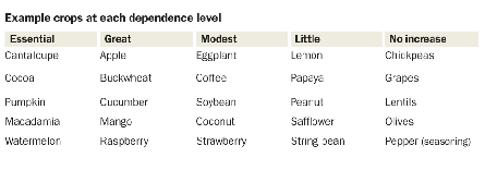 Relying on just one species for the majority of crop pollination is risky, warns Rachael Winfree of Rutgers University in New Brunswick, N.J. Though worldwide production of pollinated crops hasn’t yet declined, some emerging pest or disease that slams honeybees could put a lot of beloved foods at risk. “We’re putting all our eggs in one basket,” she says.
