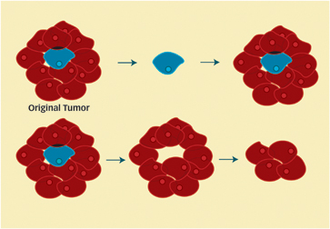 The research on cancer stem cells also threatens to upend thinking on how cancers spread, or metastasize. Conventional theories hold that metastasis is an evolutionary process in which a small number of cells within a primary tumor gradually accumulate the genetic mutations that enable them to spread to other tissues and establish new tumors. An alternative model now being put forth is that many cells in a primary tumor spread in the body, but a second tumor arises only when a rare stem cell reaches a new site.