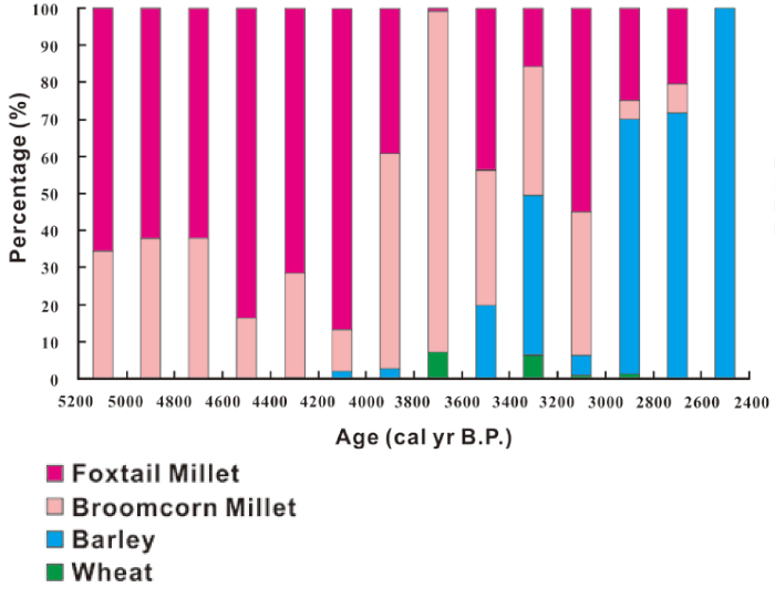 Ratios of specific forms of carbon in farmers’ bones indicated that, at villages located 2,500 meters above sea level or higher, diets shifted to Middle Eastern crops starting about 3,600 years ago. Barley dominated the plant remains at those sites.