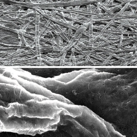 That performance is largely due to paper’s porous nature: at the nano scale, paper is a tangled matrix of fibers. This vast surface area helps inks stick, says Yi Cui of Stanford University, coauthor of the new work. This holds true for carbon nanotube ink as well. When carbon-nanotube ink touches paper, the nanotubes “get caught very tightly to the cellulose,” says Cui, probably just via good old electrostatic forces.