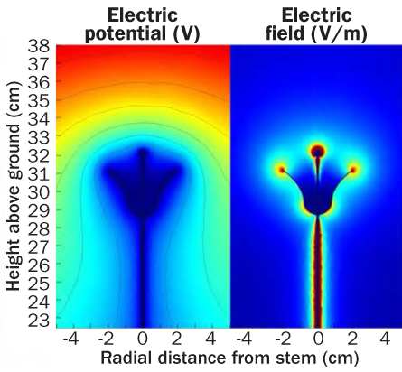 Plants, a bit like lightning rods, tend to conduct electrical charges to the ground, Robert says. And bees pick up a positive charge from the atmosphere’s invisible rain of charged particles.