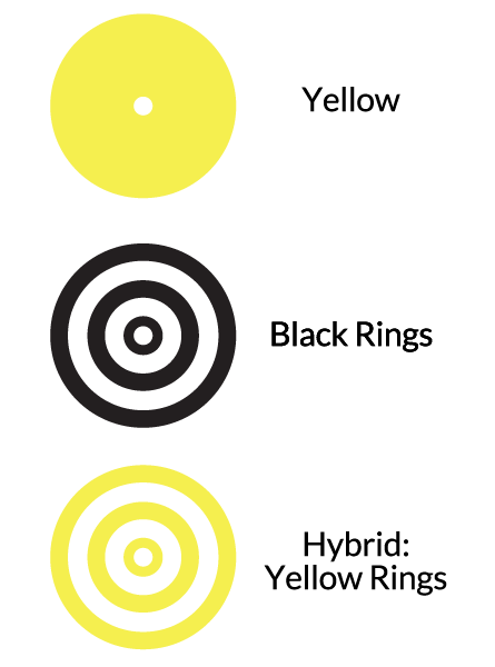 In trials one to three days later, bees that visited the yellow flower first and then the black-and white-ringed one continued to return to the black- and white-ringed ones. Bees that initially visited the black- and white-ringed flower and then the yellow one started out by repeatedly choosing to take a reward from the solid yellow one. But gradually, over the 20 trials, these bees’ preferences changed: They began picking the hybrid flower with yellow circles.