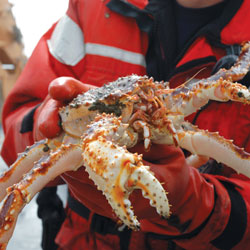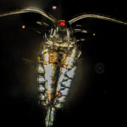 Sea ice, whether migrating in or forming in place, is an anchoring part of the Bering Sea ecosystem. The ice helps determine when and where food becomes available to creatures living in the water or on the seafloor. As the migrating sea ice travels south, it melts. That meltwater is relatively fresh and less dense than the surrounding water. As a result, the waters become stratified, with the layer of fresher water staying on top. That freshwater, full of nutrients, helps give rise to the southern Bering Sea’s springtime phytoplankton blooms, which in turn feed copepods and other small floating creatures. When the phytoplankton eventually die and sink to the seafloor, they provide an important food source for creatures living on the bottom.