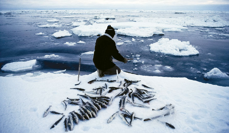 With an average temperature just below zero degrees Celsius — a few degrees colder than the surrounding water — that deep, cold pool is central to the Bering Sea ecosystem. The cold pool is where Arctic cod take refuge, hiding from predators such as Pacific cod and pollock, which are less tolerant of the cold. The Arctic cod get fat on large, shrimp-like copepods and spawn their young. In turn, the fish keep polar bears and seals well-fed.