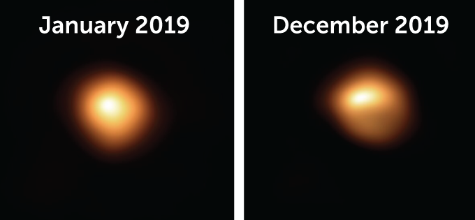Montargès and colleagues have observed Betelgeuse with the Very Large Telescope in Chile. The star looked markedly dimmer in December 2019 than it did when the telescope observed it in January 2019, before the fade-out began. But the dimming seemed to appear only in the star’s southern hemisphere, not uniformly across Betelgeuse, according to an image the team released February 14. That could be explained by an asymmetrical dust cloud, although the situation may be more complicated. Montargès plans to observe Betelgeuse again the week of March 16 and publish the results later this year.