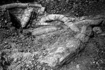 Bite marks are a type of evidence known as trace fossils. Others include footprints, nests, burrows, boreholes, and gastroliths–the gizzard stones that plant-eating dinosaurs swallowed that helped them grind tough vegetation into a more digestible pulp. Another type of trace fossil is coprolite, or fossilized feces. Ichnology, the analysis of such trace fossils, can reveal subtle details of an animal’s environment, behavior, and relationships with other species. When added to information gained from body fossils, these clues to lifestyles help scientists conjure a much richer picture of prehistoric life.