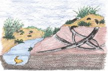 The Trirachodon could have inhabited burrows for several reasons, including protection from predators while it was rearing its young. Living underground also would have helped the animal escape seasonal and daily temperature extremes. MacEachern notes that the climate in South Africa at the time was similar to that in the southwestern United States today, with generally arid conditions and big swings in temperature between day and night. The dry soils and low water tables might have encouraged the animals to dig their burrows in riverbanks or other areas that flooded only occasionally.