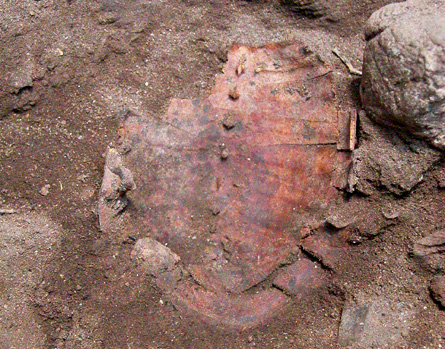 Burnt areas on shells but not bones indicate that the tortoises were roasted in their shells.