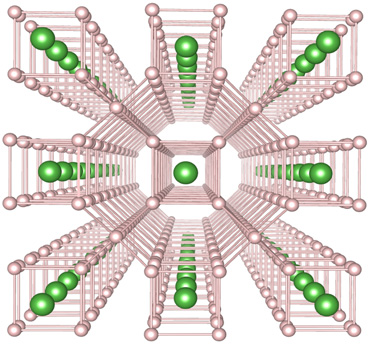 The compound LaH10 is composed of 10 hydrogen atoms (pink) for each lanthanum atom (green). This hydrogen-rich material was predicted to exhibit superconductivity, evidence for which has now been found. HANYU LIUA new record for a superconductivity cliché
