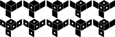 Puzzle designer and expert solver Wei-Hwa Huang has come up with an intriguing set of dice that combines the cubic form of standard dice with the simplicity of binary choices. These dice lend themselves to a variety of entertaining puzzles and games. He calls them “Boolean dice.” The term “binary dice” was already taken.
